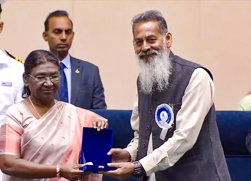 Dr. Sachchidanand Joshi, Member Secretary of IGNCA, along with Bappa Ray, received the award from President Droupadi Murmu at a ceremony at Vigyan Bhavan.