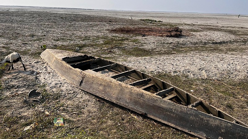 India : Damaged boats lying on a dried-up river bed after floods receded. Photo by Meenakshi J