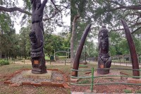 I was walking around in the famous Lal Bagh of Bengaluru on a monsoon day recently when some huge structures caught my eye. Sure, the Lalbagh Botanical Garden, its formal name, is known all over for its sprawling 240 acre area, its 200 year old history starting with ruler Hyder Ali, its more than 1,000 species of plants- some centuries old, etc., but these structures were different. Amidst the bright bougainvillea shrubs, lush green vegetation, palm trees with drooping leaves, these dark brown majestic figures stood apart. What or, who were they?