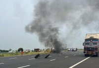 Delhi: A luxurious Rolls Royce Phantom limousine caught fire as it collided with a petrol tanker on the New Delhi-Mumbai expressway on Thursday evening, burning both occupants of the tanker alive, media reports said.